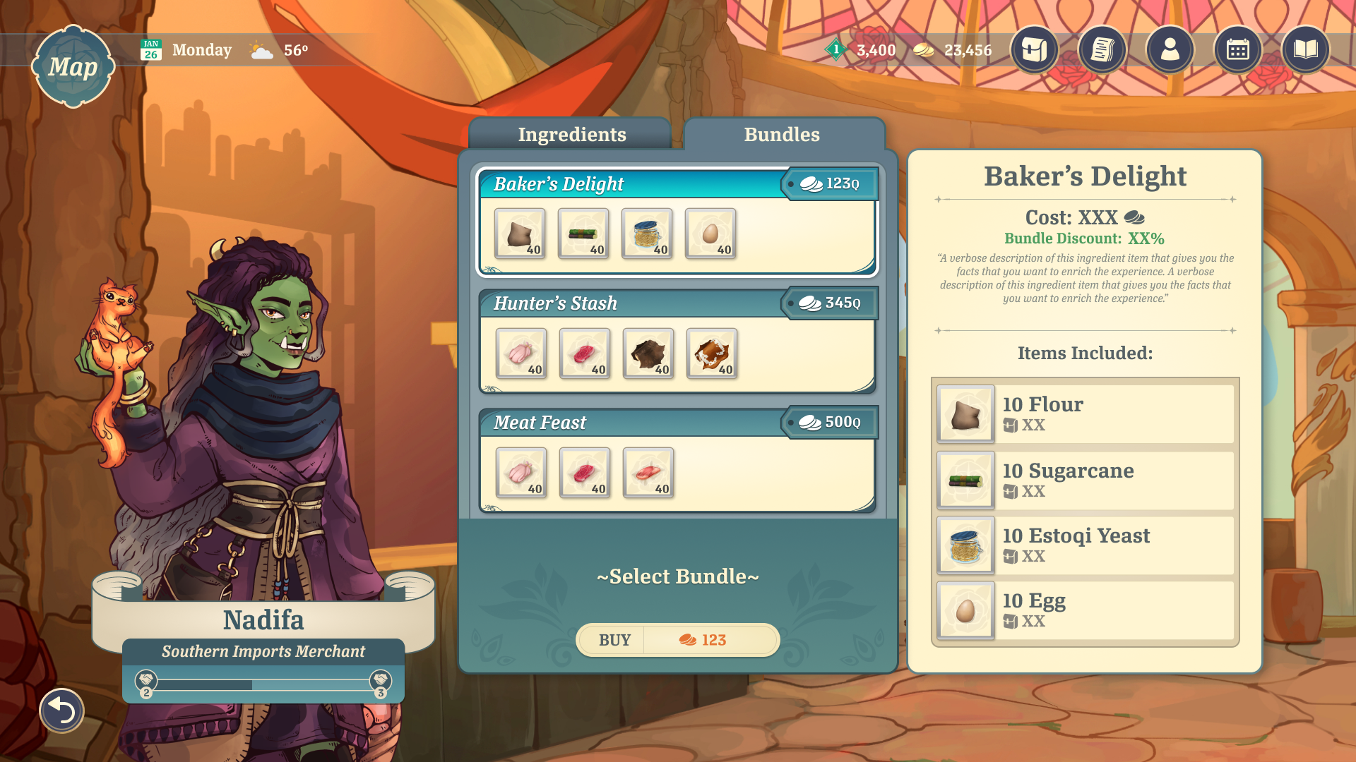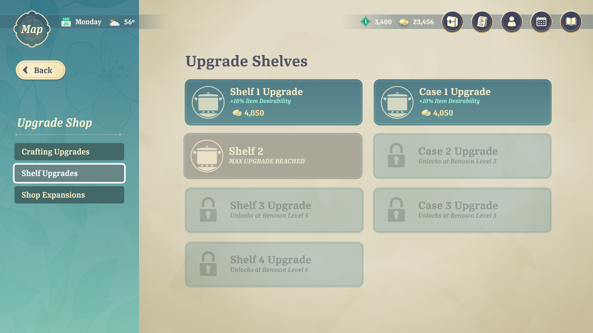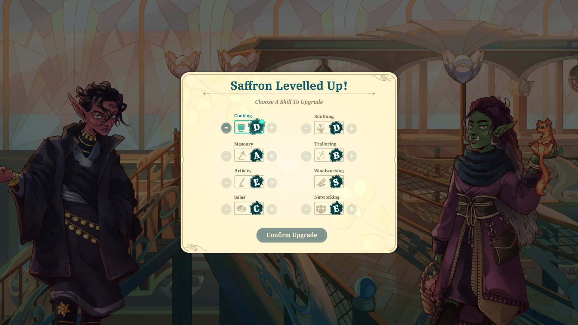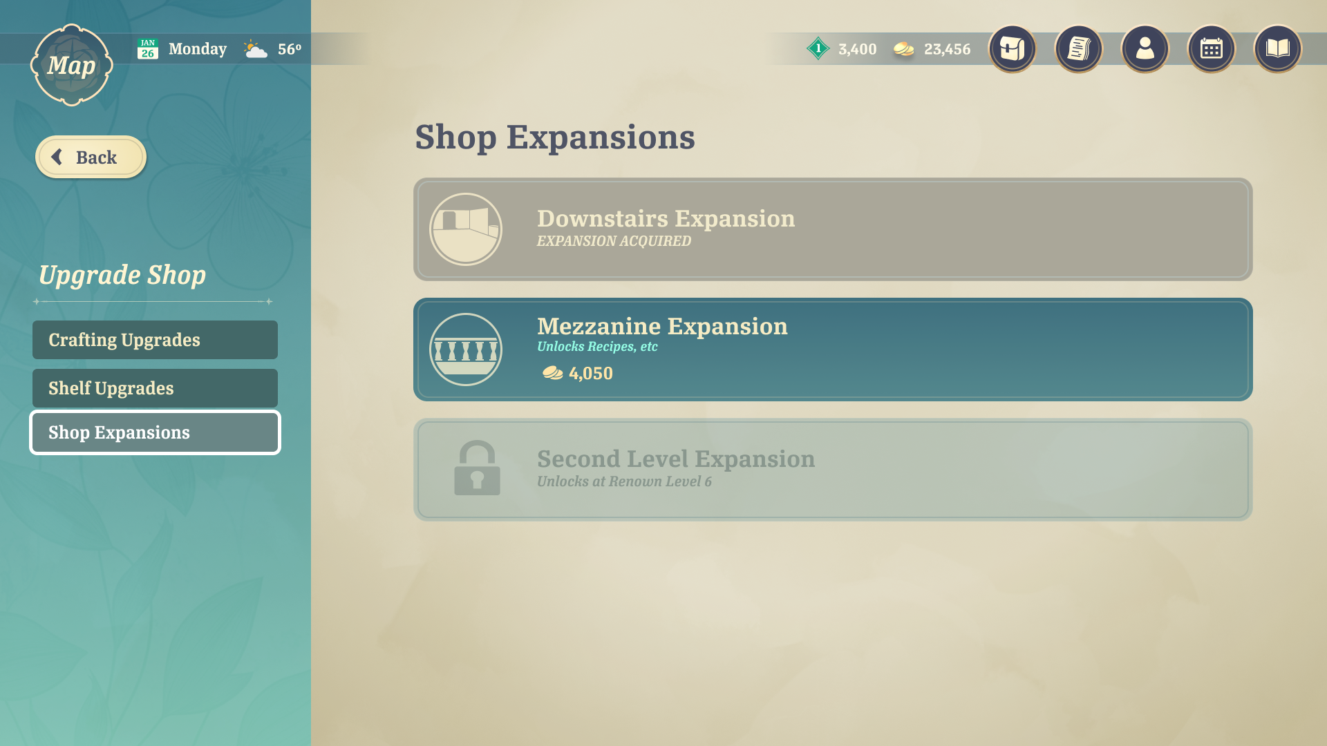 The player must manage their own shop to make money. They can assign their Companions to different roles based on their skills, providing bonuses to the shop. They must also stock the store's shelves with items to sell. The player can upgrade parts of their shop to activate more bonuses.