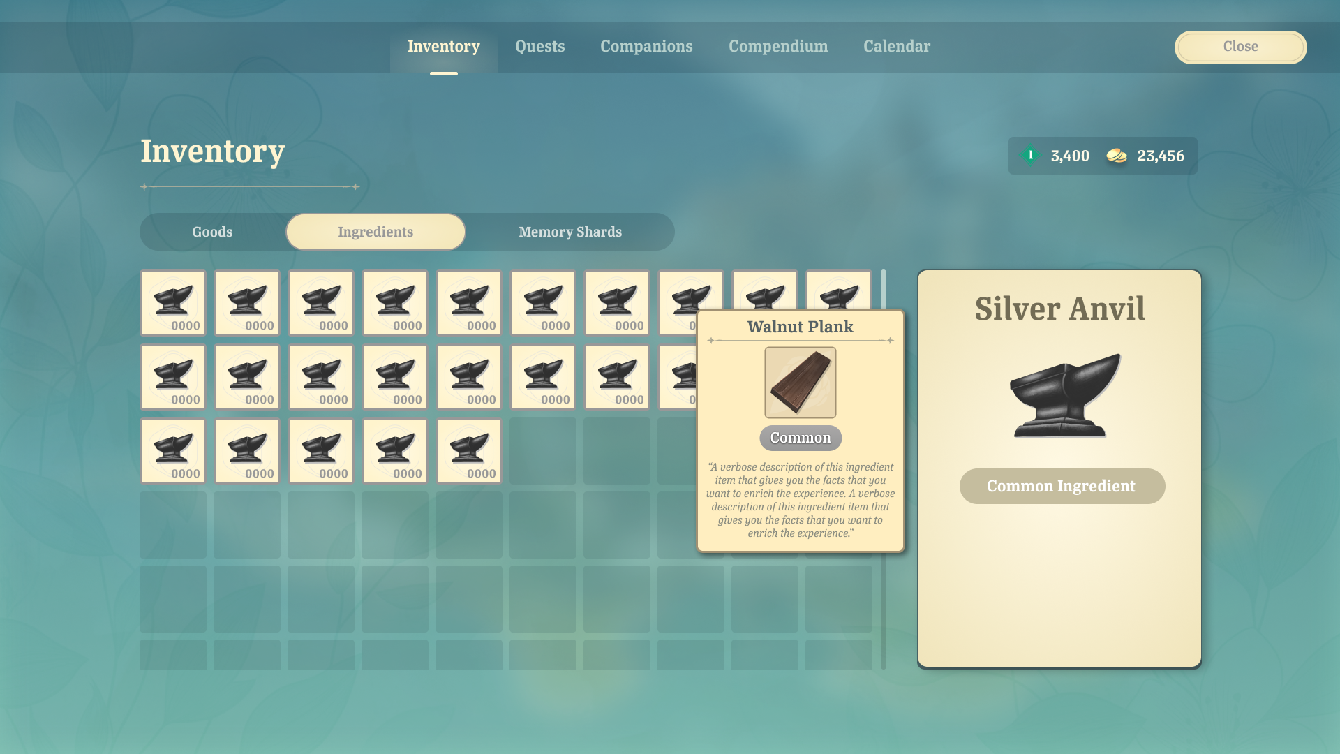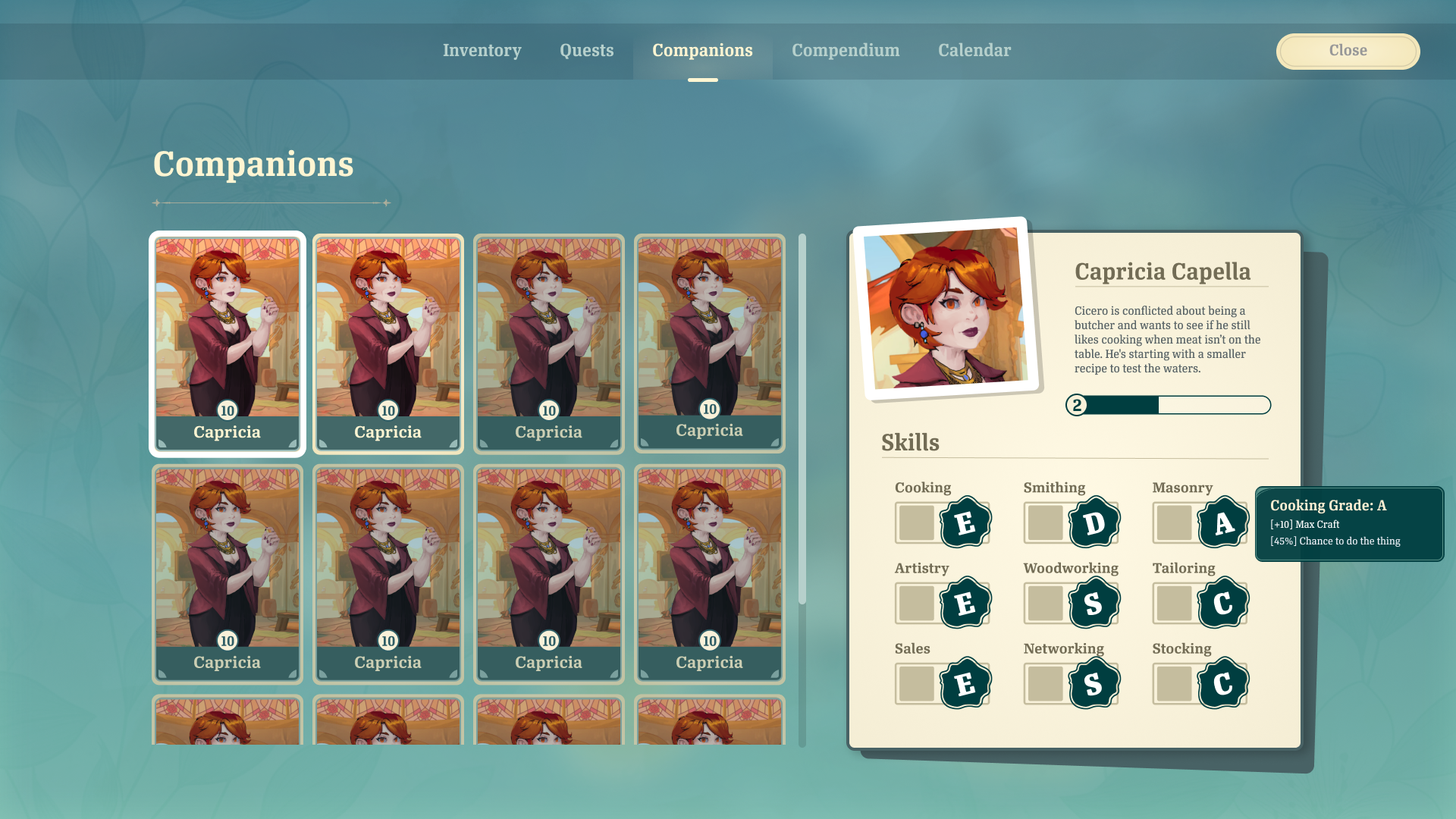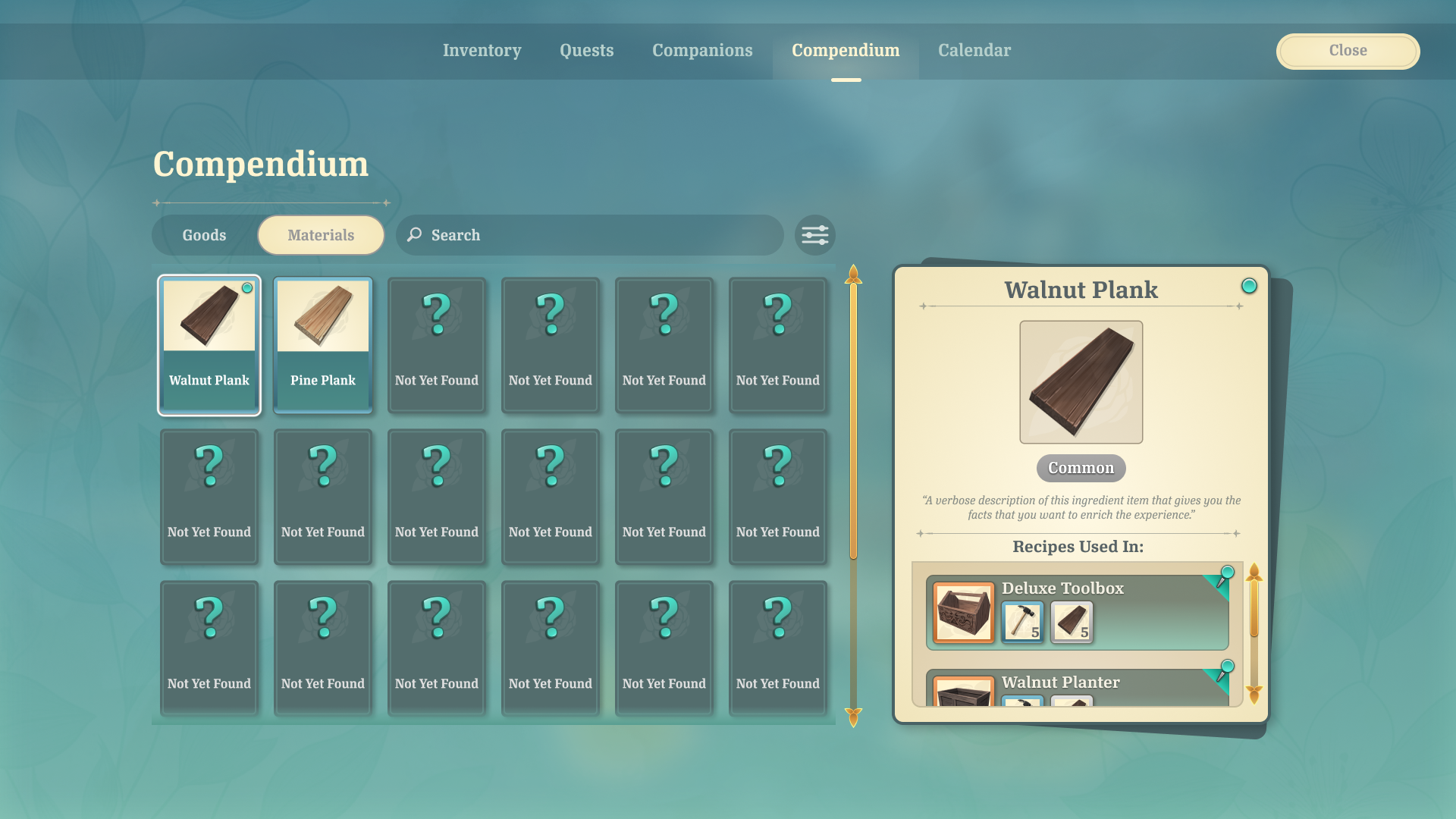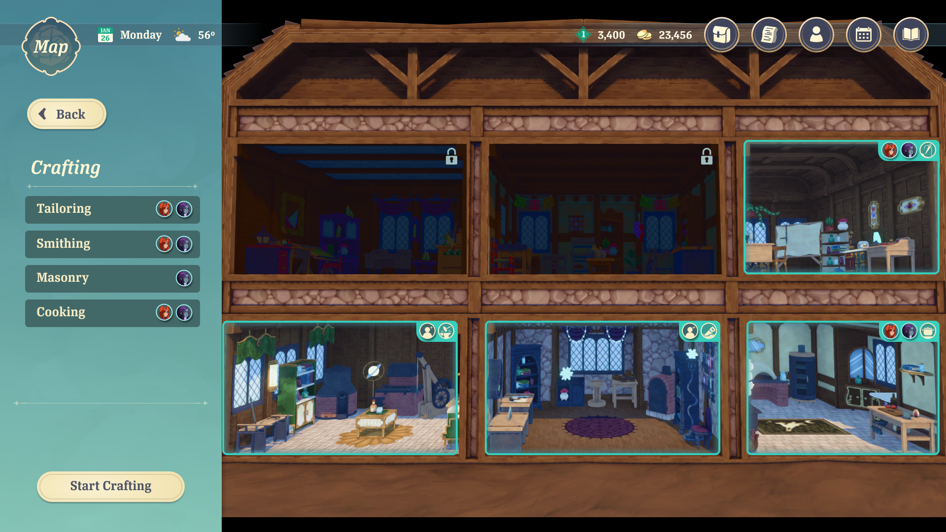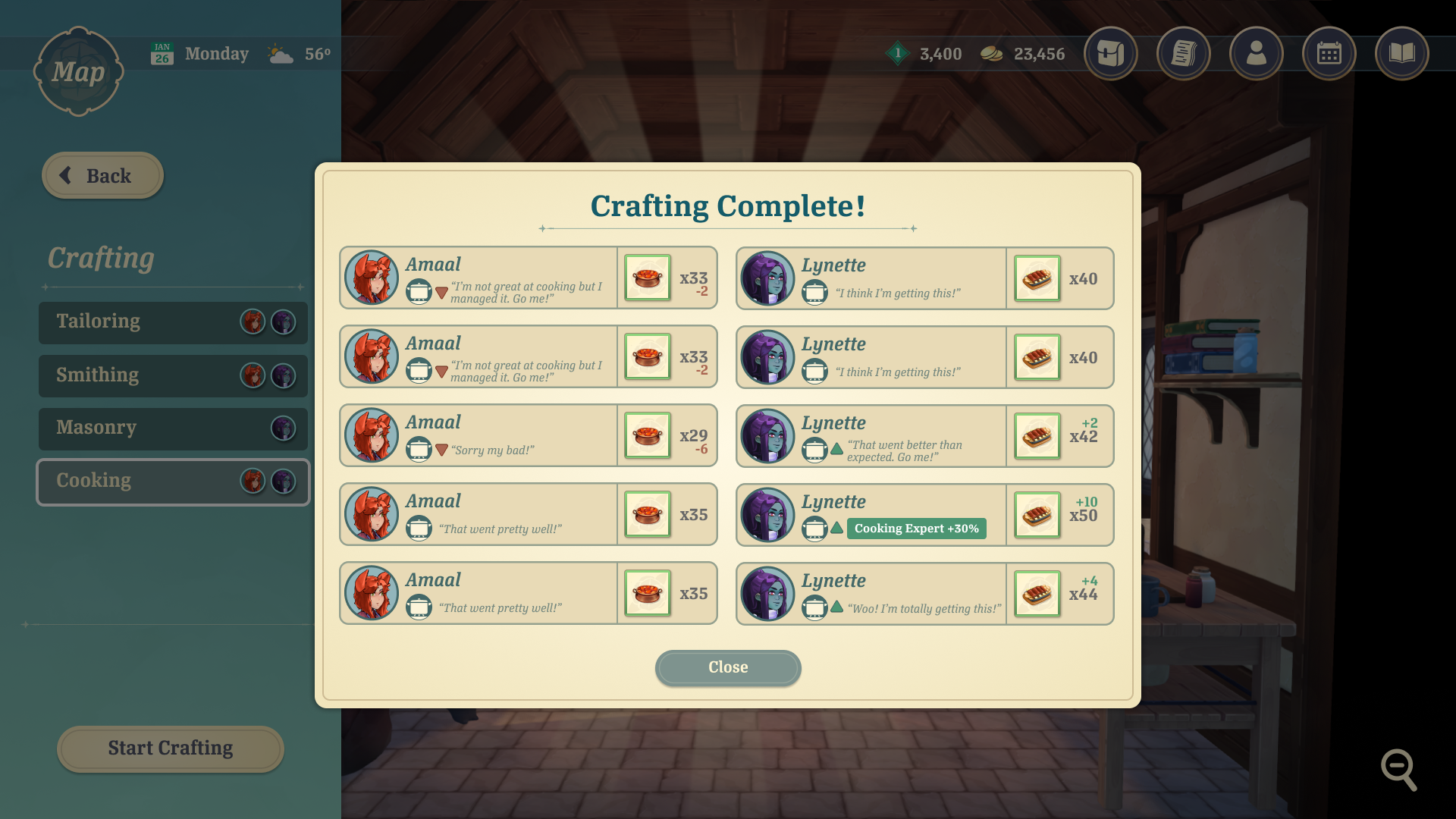 The player's shop must be stocked with items that they crafted in their store's workshops. The player can assign Companions to different workshops, where their crafting skill stats can lead to better crafting outcomes. The player can select recipes and quantities to assign to the workers.